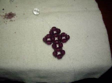 Получился большой крестик из бисера. Чтобы уменьшить его размер, стоит взять вместо бусин крупный бисер и немного уменьшить количество бисерин для оплетки.