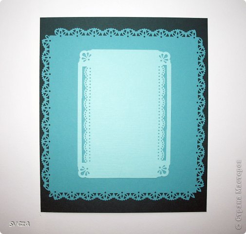 Для меня осень ассоциируется с золотой листвой на фоне голубого неба, поэтому я решила использовать для фона бумагу голубых оттенков. Для создания ажурного края использовались декоративные дыроколы.