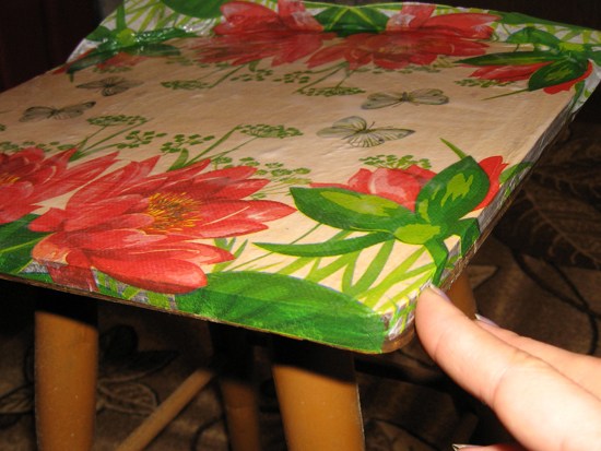 - Вот и готов ваш первый декупаж табурета.