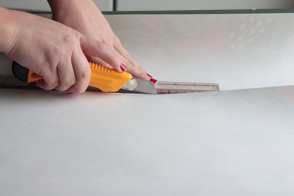 Шаг 1. Для начала разрежьте оберточную бумагу на листы формата А4. Чтобы края были ровными, используйте для обрезки линейку и канцелярский нож. Чтобы не испортить рабочую поверхность, вы можете положить под лист упаковочной бумаги специальный коврик для резки.