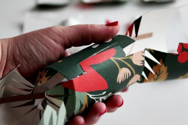 Шаг 11. Теперь вы можете вложить в упаковку небольшие подарки, корону и пожелания. После этого закройте саму конфету, вставив вкладки-держатели в вырезы на противоположной боковой стороне.