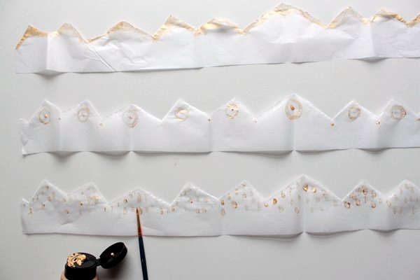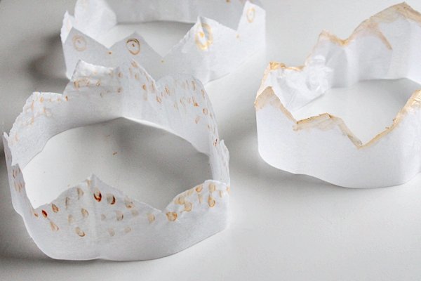 Шаг 7. Полученные заготовки с острыми зубцами, закрасьте золотистого цвета маркером по своему усмотрению. Вместо маркера вы можете использовать обычный золотистый акриловый контур.