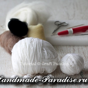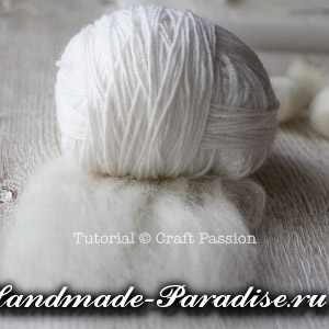 - пряжа — клубки любой пряжи, желательно белого цвета или в тон используемой вами шерсти для валяния,