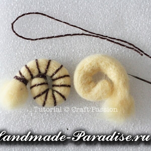 Смотрим как из шерсти для валяния желтого цвета сделать рожки: