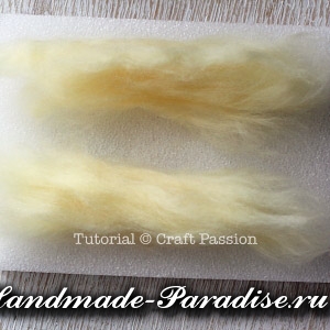 - шерсть или ровница для валяния грязно-белого и желтого цвета,