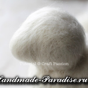 И добавляем еще белой шерсти. Но приваливаем ее уже не так плотно. Она должна быть рыхлой, мягкой и пушистой, как облачко.