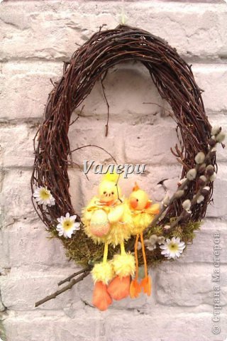 Основанием для пасхального венка, созданного своими руками, может послужить картон, ветки, проволоки и даже газеты. Зачастую используют ивовые прутья. Они легко гнутся и не ломаются, поэтому с ними комфортно работать. Венок, выполненный из ивовых прутьев, выглядит как гнездо и символизирует домашний уют.