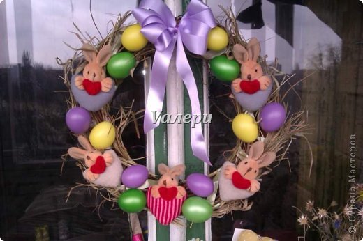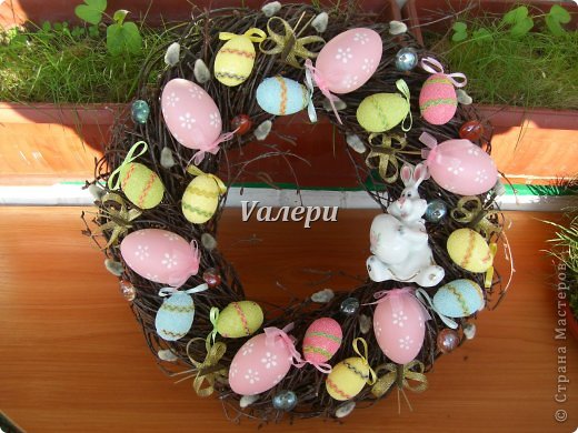 - Вот и все пасхальный венок считается изготовленный. И он может использоваться для праздничного декора.