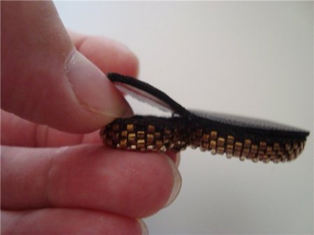 Последний ряд обшивки выполняем мелким золотистым бисером.