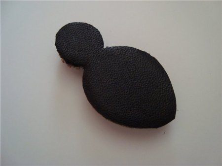 Из картона делаем лекало туловища и по нему вырезаем такую же детальку из кожи/кожзама. Приклеиваем кожу к картонке, а затем все это приклеиваем к туловищу паука (оставляя его голову пока не приклеенной).