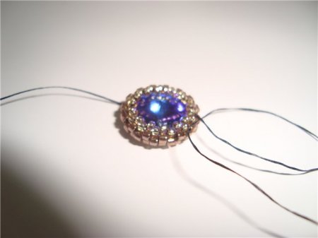 Далее необходимо соединить кабошон с риволи маленькой перемычкой.