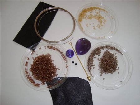Покупая ювелирную проволоку, проверьте возможность нанизать на нее стеклярус. Если подходящей по диаметру не нашли, то можете использовать обычны витой медный провод из заначек мужа.