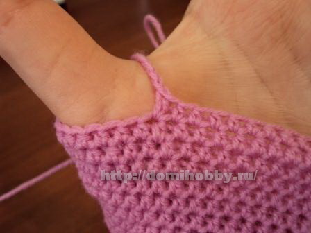 Вяжем несколько рядов до тех пор, пока пальчик не будет как раз. Для этого необходимо его примерять к руке.