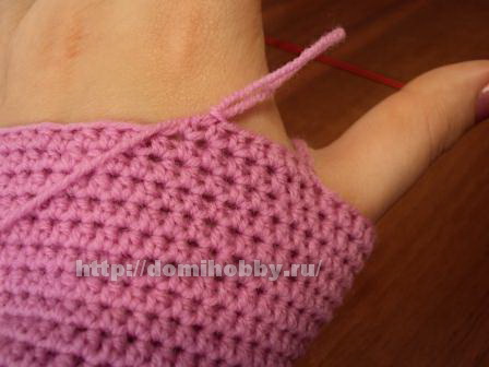Как правило, для формирования пальчиков необходимо провязывать от двух до четырех рядочков.