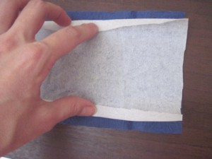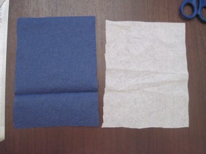 Вырежьте из салфеток два прямоугольника, края внутреннего слоя загните приблизительно на один сантиметр вовнутрь.