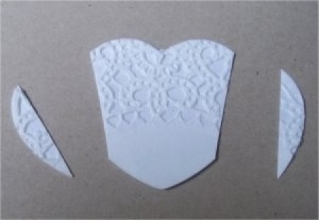 Из обычной белой бумаги вырезаем подкладку-шаблон под наш ажурный корсет.