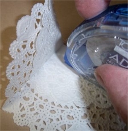 Вырезаем, склеиваем бумагу и ажурную салфетку.