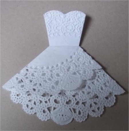 Нашла здесь замечательную идею открытки с платьем из бумажной ажурной салфетки. И решила сама сделать такую красоту. Результатами трудов делюсь с вами.