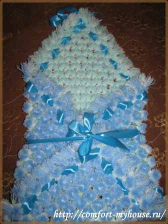 Из таких пледов делают конверты для выписки: для мальчиков — синие, а для девочек — розовые. Но цвет зависит полностью от вашего воображения.