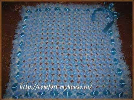 Таким образом, мы с вами смогли научиться как пошагово сделать плед из помпонов.