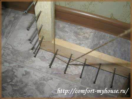 Вбиваем гвозди семидесятку на расстоянии 4 см друг от друга