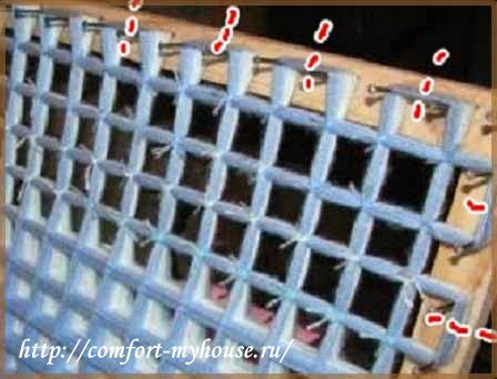 Необходимо перевязать все пересечения нитей. Перевязывать необходимо туго, чтобы будущее изделие не развалилось при использовании.