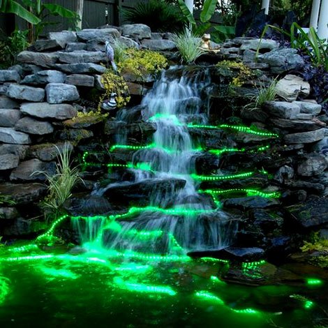 Фонтан или водопад на территории собственного приусадебного участка – это потрясающей красоты зрелище, радующее глаз и способствующее отдыху и хорошему настроению. Но еще красивей и зрелищней он выглядит тогда, когда оснащен разнообразной подсветкой.