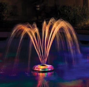 Также можно найти в магазинах подсветку для мини-фонтанов. С её помощью организовать фонтан с подсветкой очень просто. Подсветка устанавливается на насадку, а затем подсвечивает фонтан снизу.