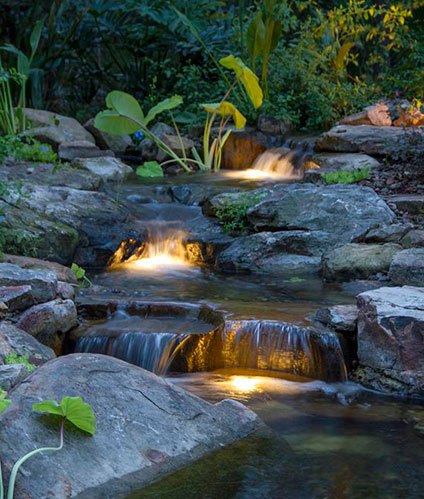Осветительные приборы, используемые для подсветки фонтанов и водопадов