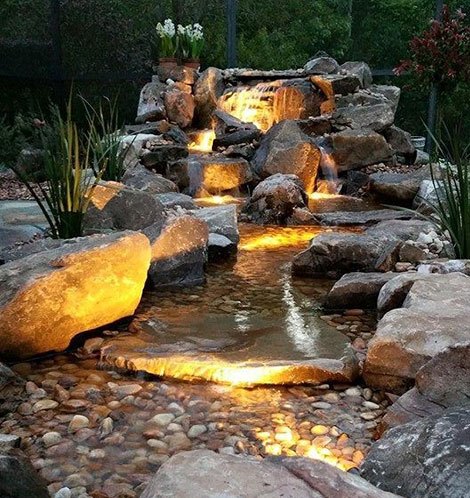 Если вы обладаете хотя бы базовыми знаниями в электрике, то сможете самостоятельно оборудовать фонтан или водопад с подсветкой, т.к. эта задача не представляет собой ничего сложного.