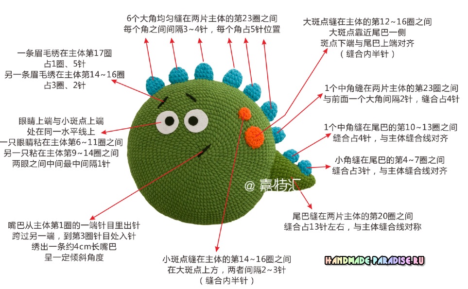 21-30 ряды – без изменения (30) Закончить, оставить нить для пришивания, плотно набить наполнителем.