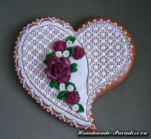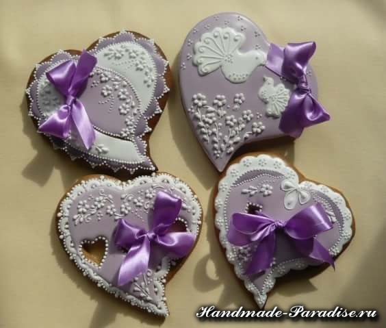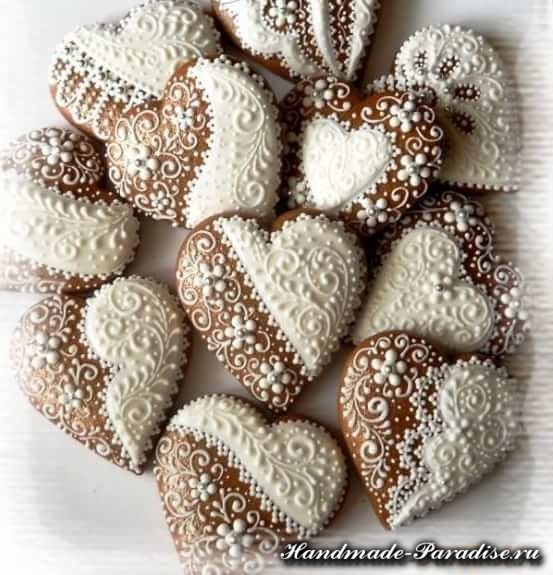 Это лишь один из способов, как можно украсить имбирный пряник к празднику 14 Февраля. Можно придумать свои узоры, использовать различные цвета и украшения. Подарок обязательно будет оценен по достоинству и принесет много положительных эмоций вашим любимым в День святого Валентина.