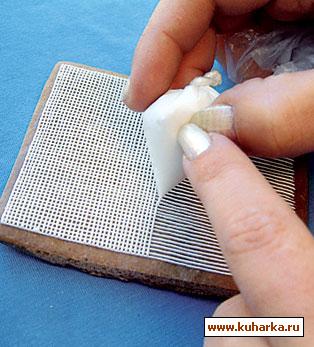 Выдавливаем равномерные линии и заполняем поверхность пряника сеткой.