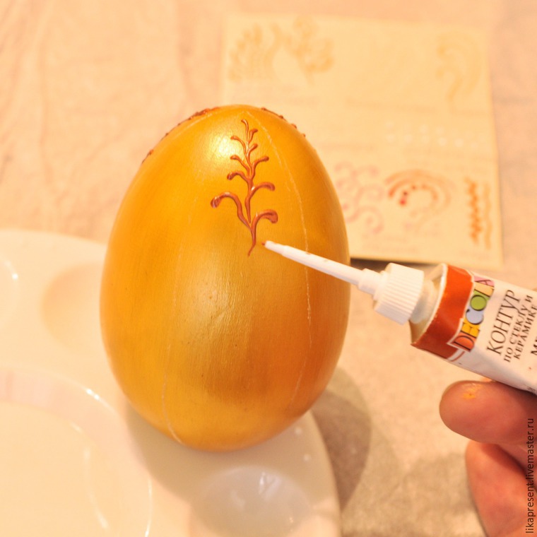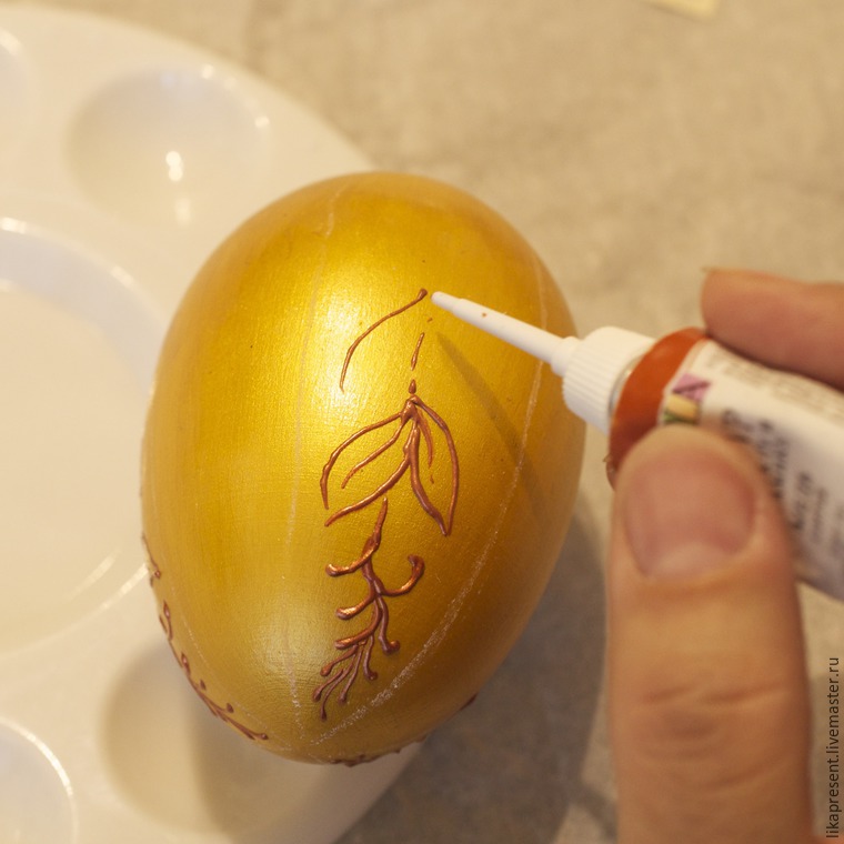 Когда верхняя часть подсохла, переворачиваю яйцо и продолжаю роспись на оставшуюся часть.