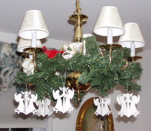 Очень воздушно смотрятся ангелы, изготовленные из бумаги. Они даже будут «порхать» от каждого Вашего движения.