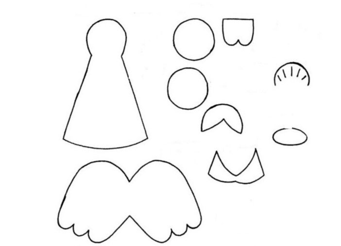 Для лица Вам нужны будут круги из фетра, которые разрисовываем маркерами (глазки и щеки). Нимб — широкая лента.
