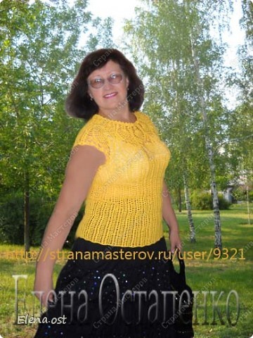 Здравствуйте ! Я Прыткова Татьяна. Вязанию на спицах научила бабушка- самые простые узоры, на 5 спицах- носочки. Крючком увлекла знакомая. Вот уже лет 10- вяжу только крючком. На Ваш конкурс хочу представить летний топ.