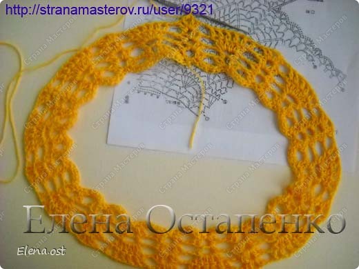 - Цепочка из В.П. = 76 см., замкните в кольцо и провяжите кокетку по С/Х 1, представленной на фото ниже. Ее высоты должна быть не больше 20 сантиметров.