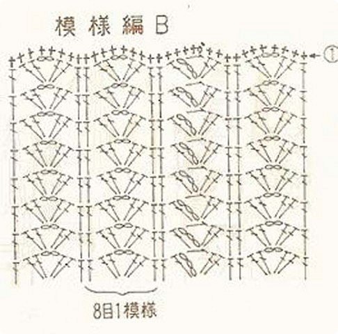 Ниже приведены схемы, по которым также можно выполнить вязание майки на лето. Небольшие вариации в выполнении узора позволяют достигнуть того, что топик может иметь разный внешний вид. Меняя количество воздушных петель в основании ракушки, между ними, а также выполняя их ближе или дальше друг от друга, вы получите новый интересный рисунок.