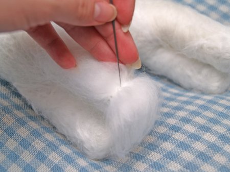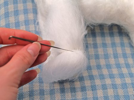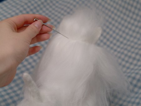 Если уши сильно торчат, то надо руками придать им желаемое положение и привалять иглой.