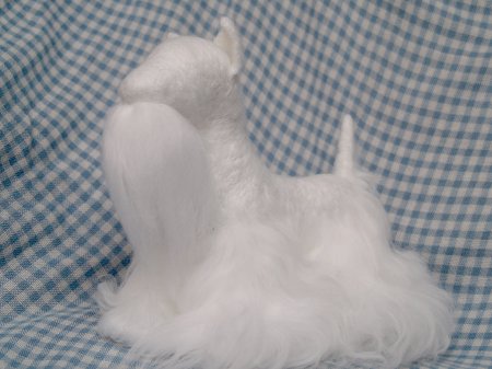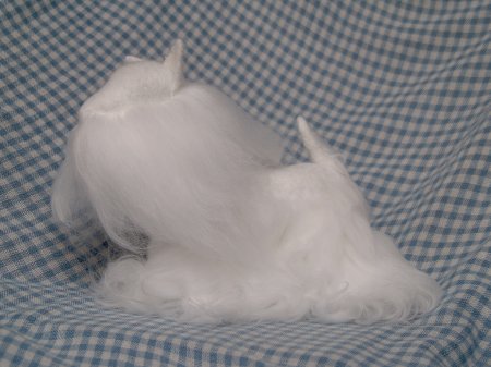 Вот собачка уже приобрела требуемую окраску. Дело за малым — привалять длинную шерсть.