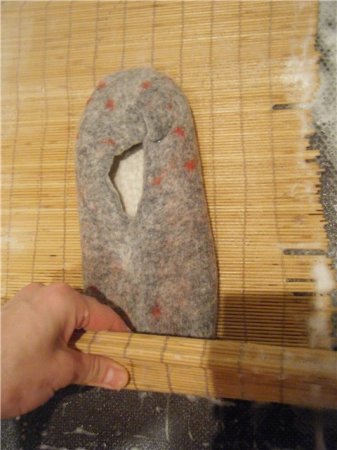 - Теперь тапки можно валять и мять во всех направлениях, как душе угодно до нужного размера;