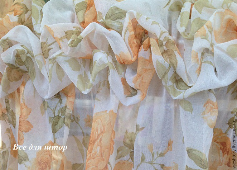 Чтобы получить буфы на шторах для кухни или других помещений, необходимо правильно выбрать ткань. Лучший эффект стянутых в орнамент складок получается на трикотажном полотне, имеющем свойство хорошо тянуться.