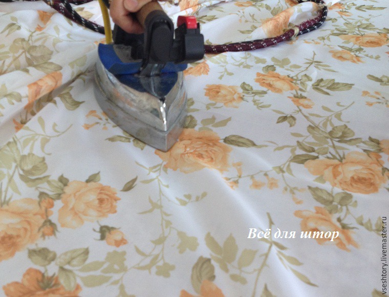 Некоторые портьерные ткани при тепловой обработке дают усадку, поэтому перед тем, как раскроить ткань по высоте, необходимо тщательно ее проутюжить, желательно с паром, если это допускается производителем.
