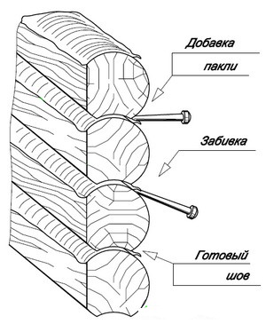 - устранения зазоров между отдельными бревнами, появляющихся в результате усадки древесины;