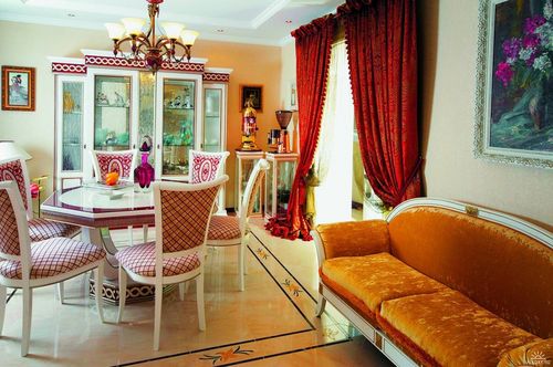 При помощи гардин насыщенного оттенка апельсина можно сделать окна одним из основных акцентов обстановки гостиной и прибавить им объёмности. Яркий оранжевый интерьер великолепно сочетается с зеленью комнатных растений. Применяя менее сочные, приглушённые оттенки, можно создать в гостиной обстановку пленяющего уюта.
