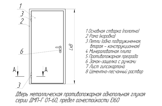 Схема однопольной противопожарной двери.