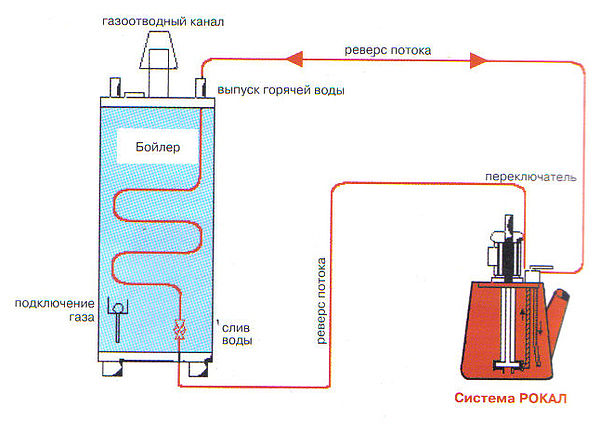 - Промывка котлов химическими реагентами, предварительно нагретыми до определенной температуры. Раствор при помощи насоса подается в систему и, вступая в реакцию с накипью и разрушая ее, выходит далее вместе с отложениями наружу (прочитайте также: “Промывка системы отопления в частном доме – инструкция и правила промывки”).