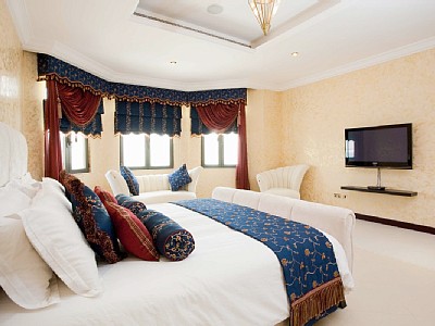 - богатая отделка потолка с люстрой в центре;