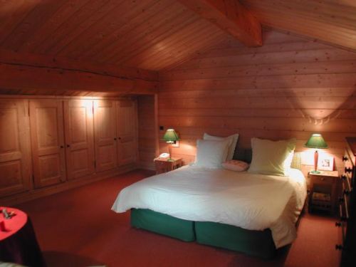 - кровать с большим деревянным изголовьем, на ней делается основной акцент;